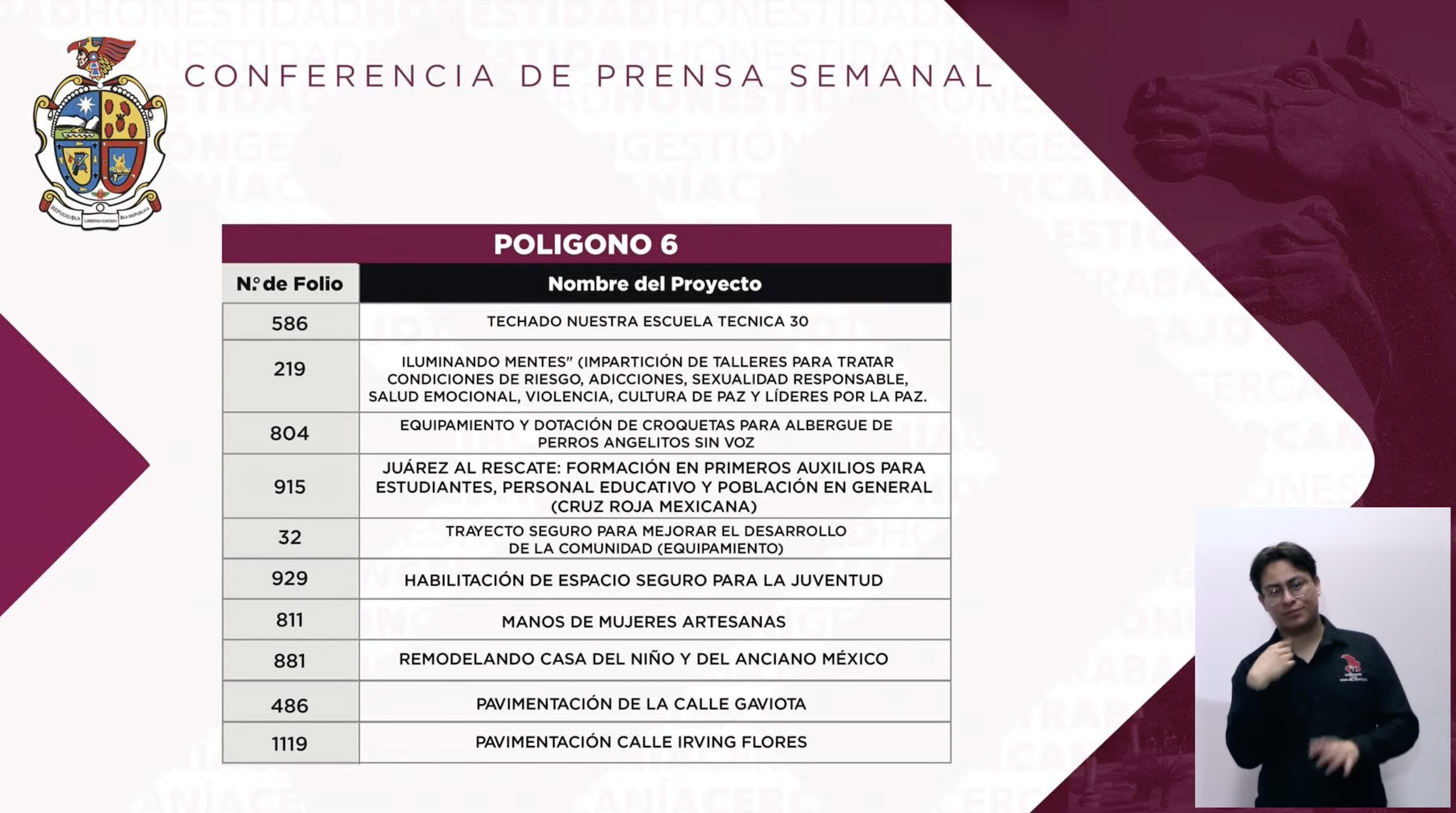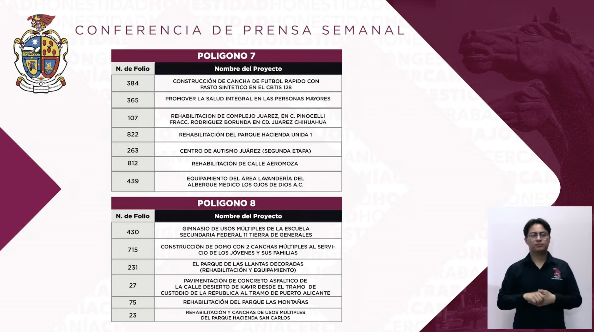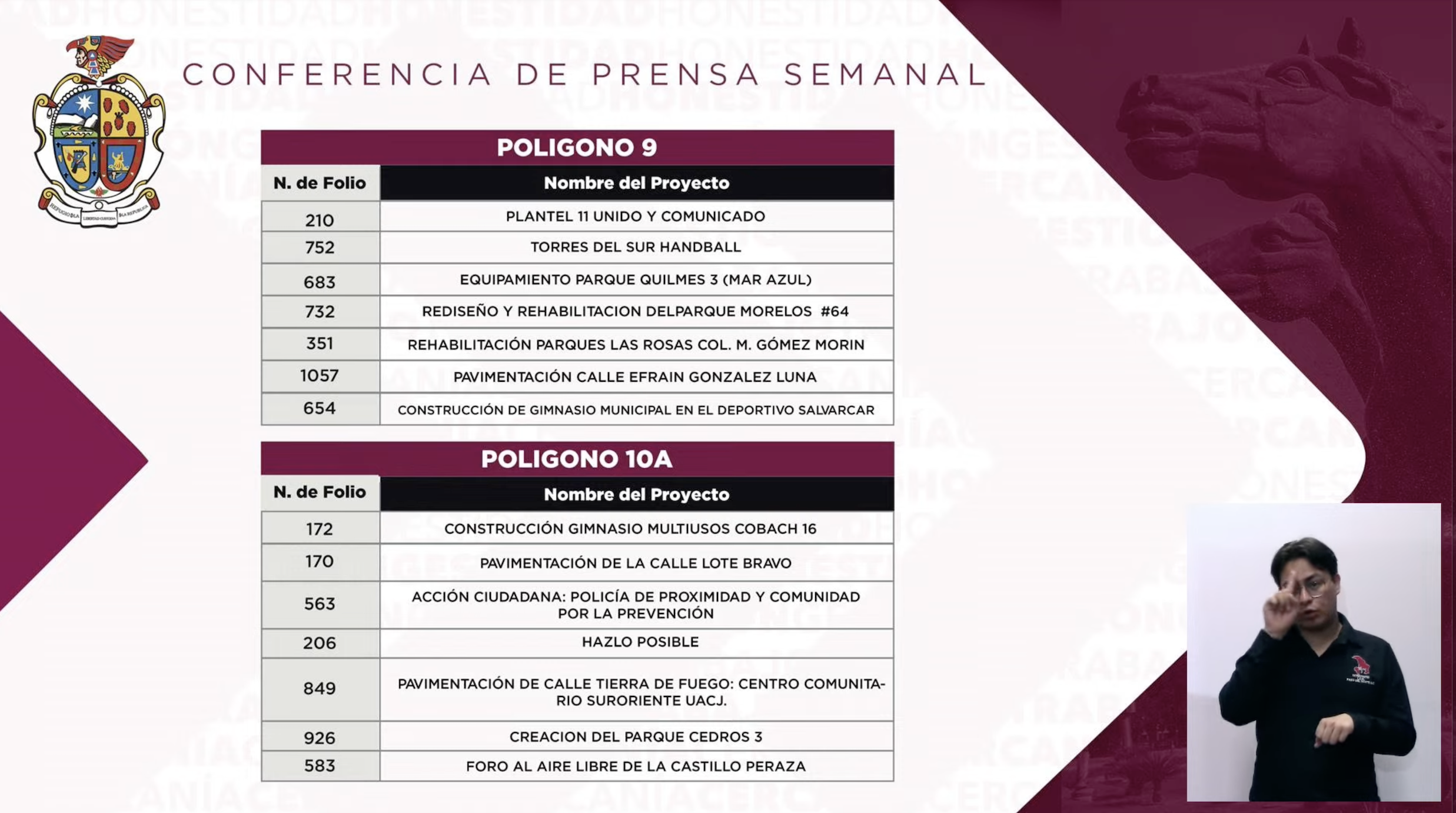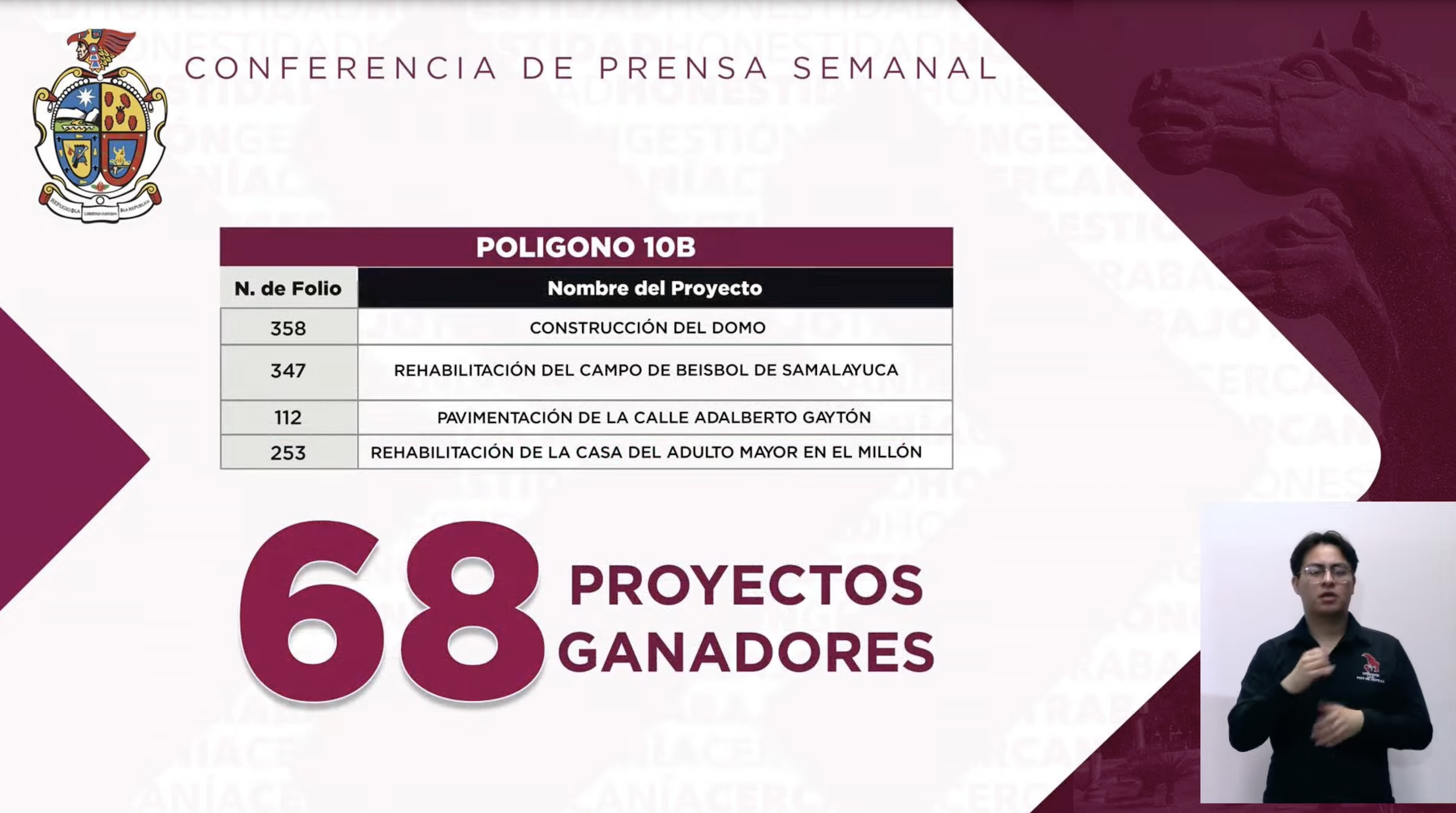 El titular de la dependencia, Sebastián Aguilera Brenes, informó que resultaron ganadores un total de 68 proyectos distribuidos en 10 polígonos determinados por los distritos electorales del Instituto Estatal Electoral de Chihuahua (IEE).