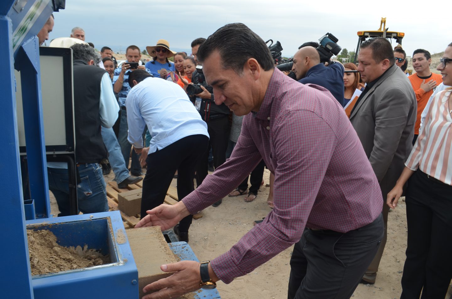Ciudad Juárez, Chihuahua.— La Comisión Estatal de Vivienda, Suelo e Infraestructura (Coesvi) entregó al Municipio de Juárez una máquina adobera para fabricar por lo menos 500 mil ecoadobes, que formarán parte del programa de auto-construcción “Vivienda para todos y con todos”. El director de la Coesvi, Carlos Borruel, y el Presidente Municipal de Juárez, Armando Cabada, acudieron al evento de entrega recepción en la colonia Real Independiente donde se iniciará la construcción de al menos 100 viviendas con este material, aseguraron. “Ya ahorita anunciamos un objetivo de 300 viviendas; si vemos que está llegando a la meta de producir los 500 mil adobes cada 6 meses, pues evidentemente que no solamente habremos de dejarla en comodato sino en donación para la población de Ciudad Juárez”, dijo Carlos Borruel. De acuerdo con el director de Coesvi la primera etapa de este proyecto en Ciudad Juárez contempla la construcción de 200 casas, lo que requerirá la creación de alrededor de un millón de ecoadobes.
