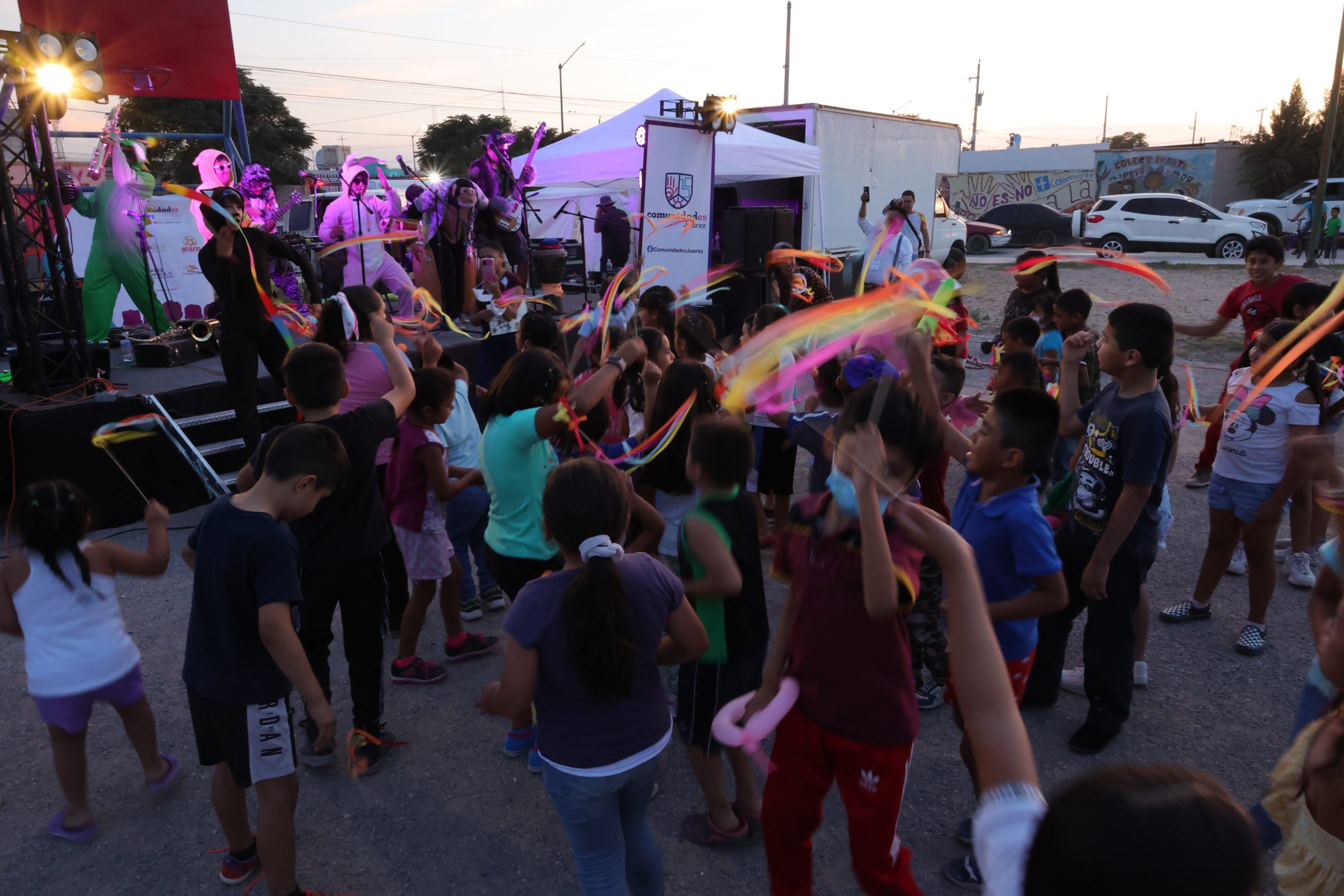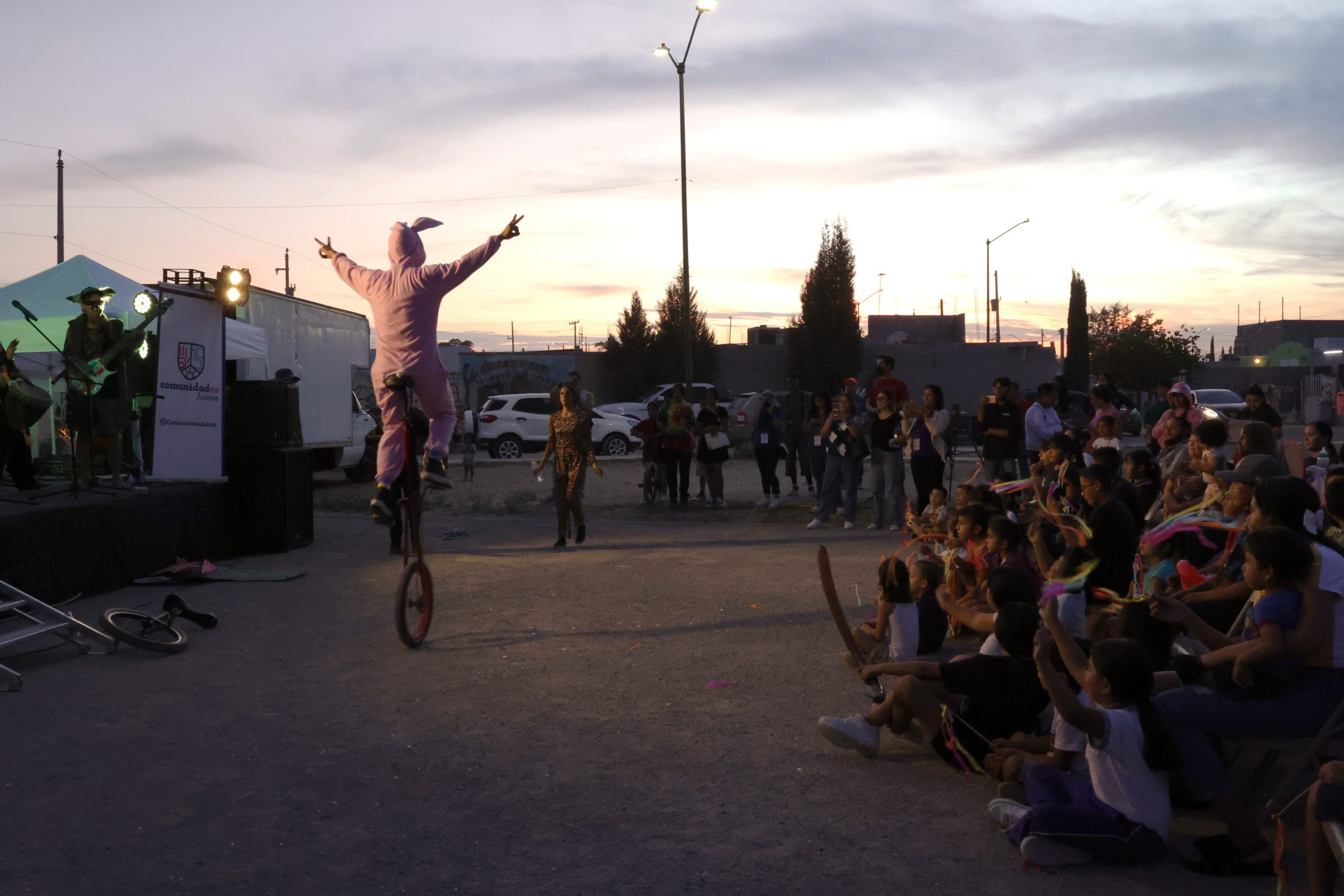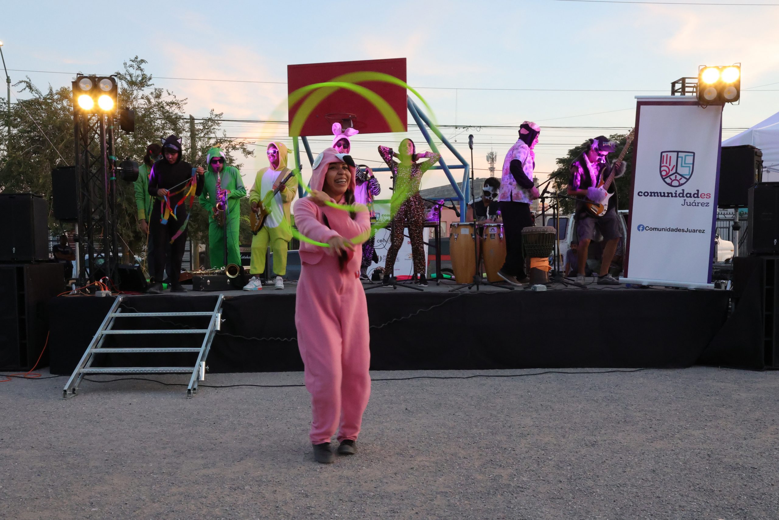 El chango, interpretado por Kevin Eduardo, opina que es importante acercar el arte y la cultura a estas zonas de la ciudad. “Se me hace una buena idea que nos estén invitando a este tipo de proyectos a presentarnos en lugares sin menos acceso a este tipo de shows dinámicos, en los que jugamos con la música, los ritmos, ponemos a bailar a la gente y venimos a traerles algo que aquí en Juárez no se ve”, menciona.
