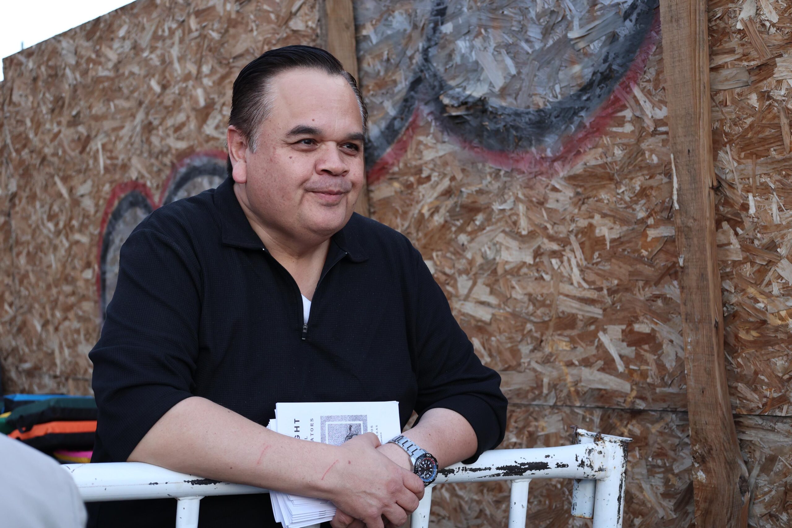 El empresario José Mario Sánchez Soledad, presidente de la Asociación Tauromaquia Mexicana, encaró brevemente a las personas manifestantes que estaban frente al acceso a la plaza, entre quienes se encontraba la artista y activista juarense Perla de la Rosa, pero rápidamente optó por retirarse de ese lugar.