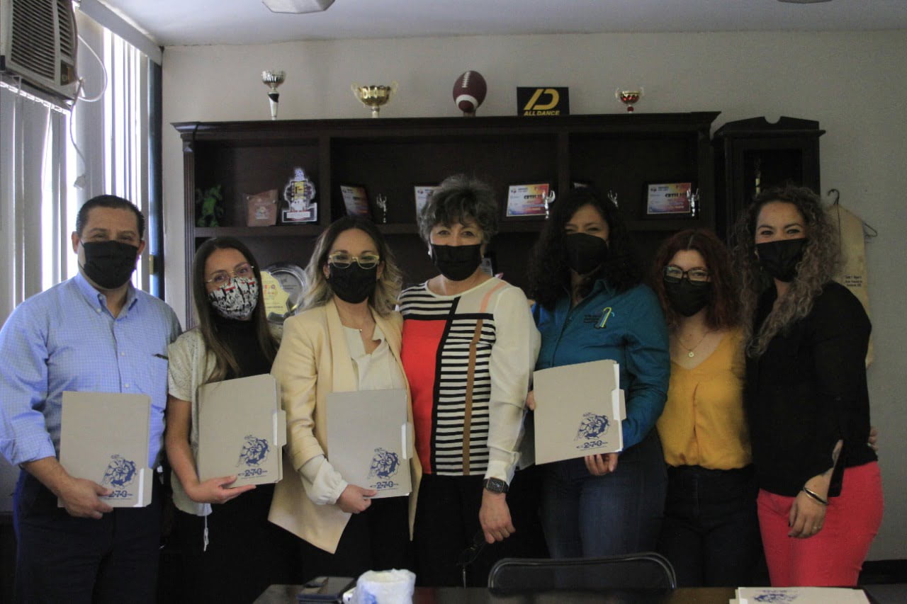 Ciudad Juárez, Chihuahua.— Las asociaciones civiles Plan Estratégico de Juárez, Arte en el Parque, Juárez Limpio y el Centro Humano de Liderazgo (Cehlíder) firmaron un convenio de colaboración con el Centro de Bachillerato Tecnológico Industrial y Servicios (CBTis) 270, el cual tiene como objetivo continuar trabajando en diversas actividades en beneficio de la población del suroriente de Juárez, en donde se lleva a cabo el proyecto social ‘Comunidades Juárez’. El convenio de colaboración se celebró la mañana del 25 de abril en las instalaciones del CBTis 270. Marisa Colmenero, coordinadora del proyecto ‘Comunidades Juárez’, dijo que a lo largo de los últimos meses el plantel educativo se ha convertido en un importante aliado estratégico para implementar diversas actividades lideradas por las organizaciones de la sociedad civil antes mencionadas. Desde inicios del año, el CBTis 270 ha abierto sus puertas para llevar a cabo actividades como talleres de pintura, fotografía, redacción periodística, proyectos medio ambientales y seminarios de participación ciudadana, en el marco de ‘Comunidades Juárez’, un proyecto social implementado en el suroriente de la ciudad auspiciado por la Fundación del Empresariado Chihuahuense, A.C. (FECHAC) en colaboración con la Fundación Comunitaria de la Frontera Norte, A.C. (FCFN). El convenio permitirá seguir sumando esfuerzos, recalcó Marisa Colmenero.