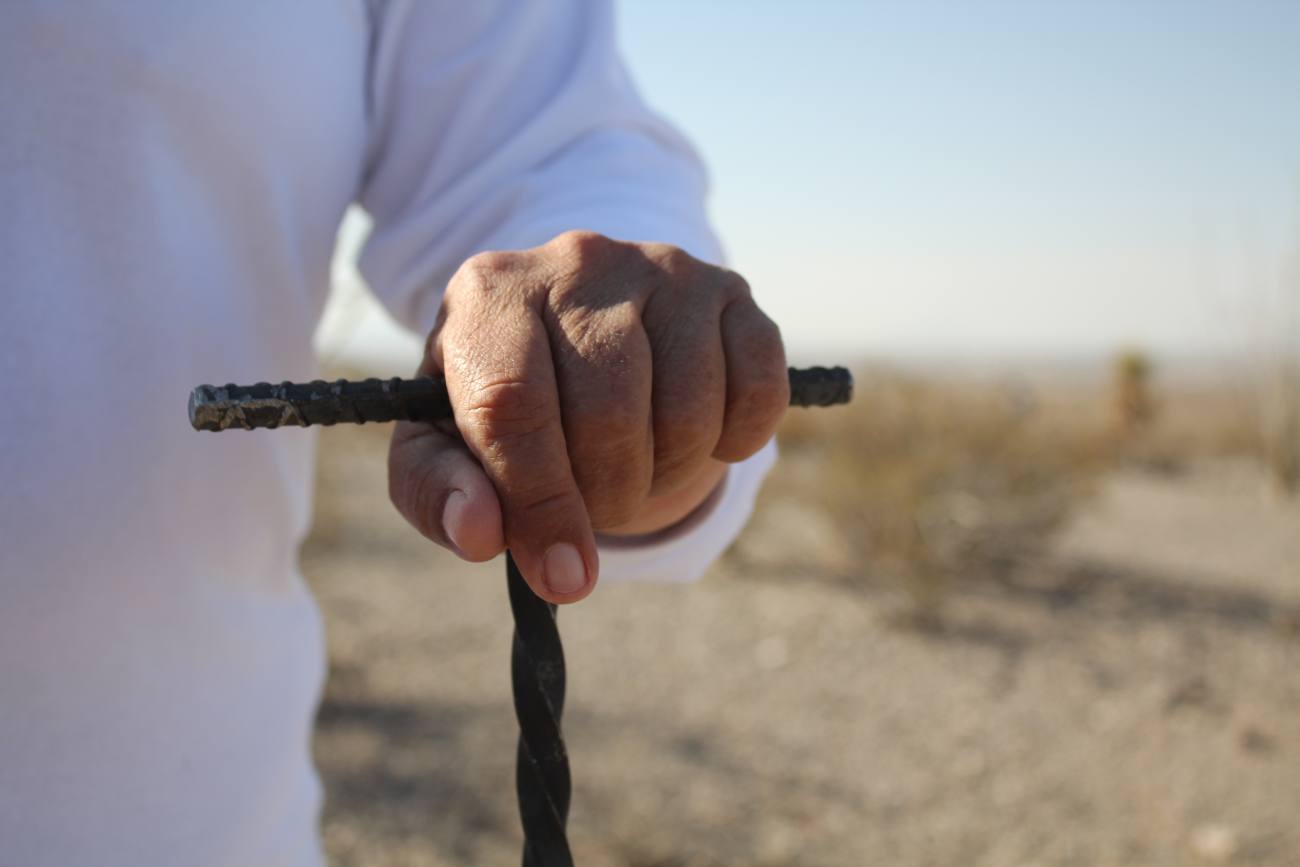 Una de las imágenes corresponde al señor Manuel Favela y la señora María Márquez, padres de Adrián Favela Márquez, quien fue sustraído de su domicilio en compañía de su amigo Adriel Ávila Barrios y permanece desaparecido desde octubre de 2012. En ella, los Favela Márquez hurgan el suelo con una vara para revelar si la tierra ha sido removida por la excavación de una fosa y huelen su punta para tratar de detectar el olor que emanan los cuerpos en descomposición. La segunda fotografía es la mano de la señora Hildelisa Ávila López, quien busca a su hermano César desde 2011, empuñando uno de estos instrumentos.