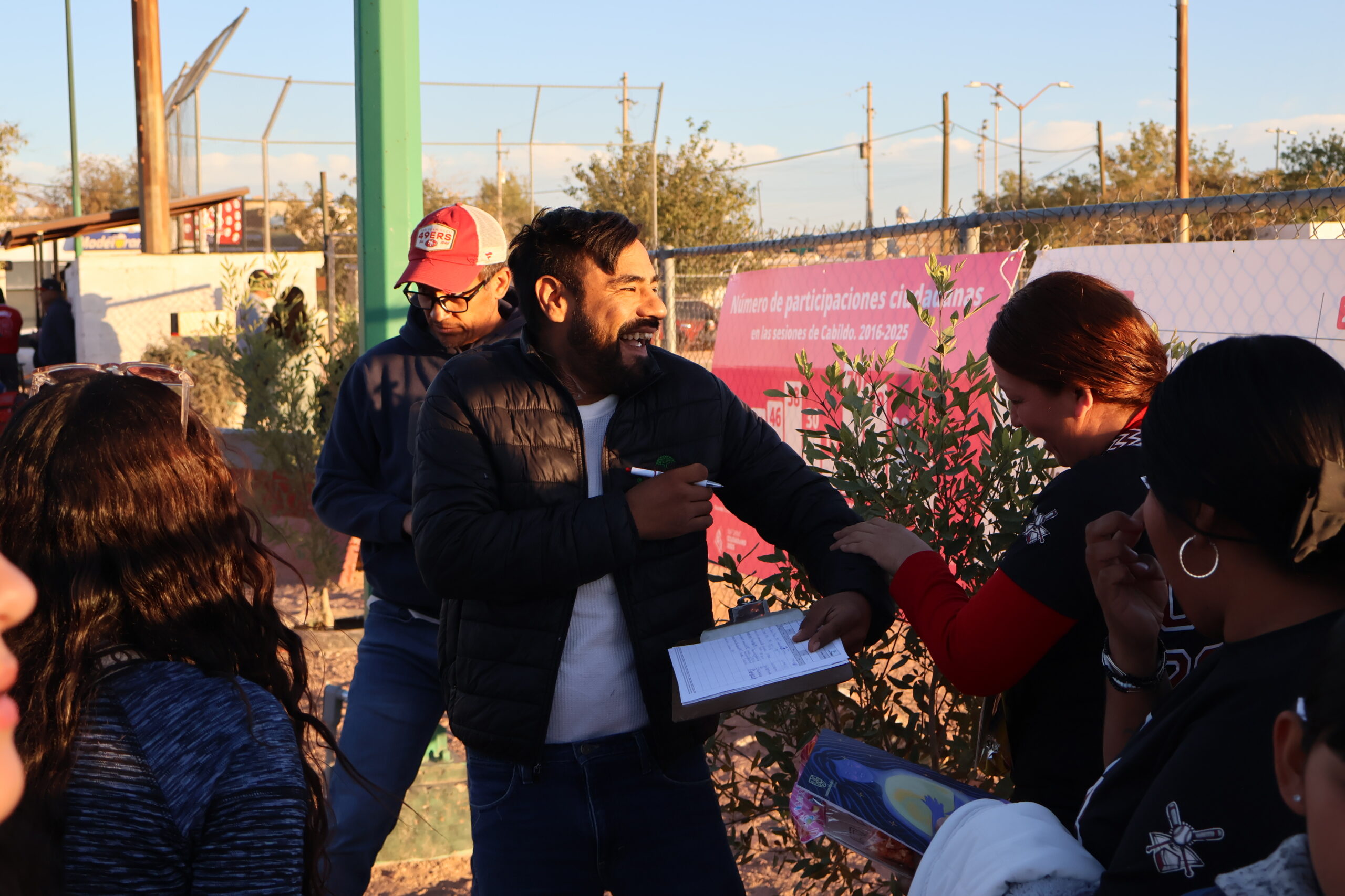 El evento se realizó en el campo de béisbol de Villas de Salvárcar, debido a que existe un grupo vecinal activo que busca mejorar sus instalaciones, explicó Brisa Maltos, gerente de Participación Ciudadana en Plan Estratégico de Juárez.
