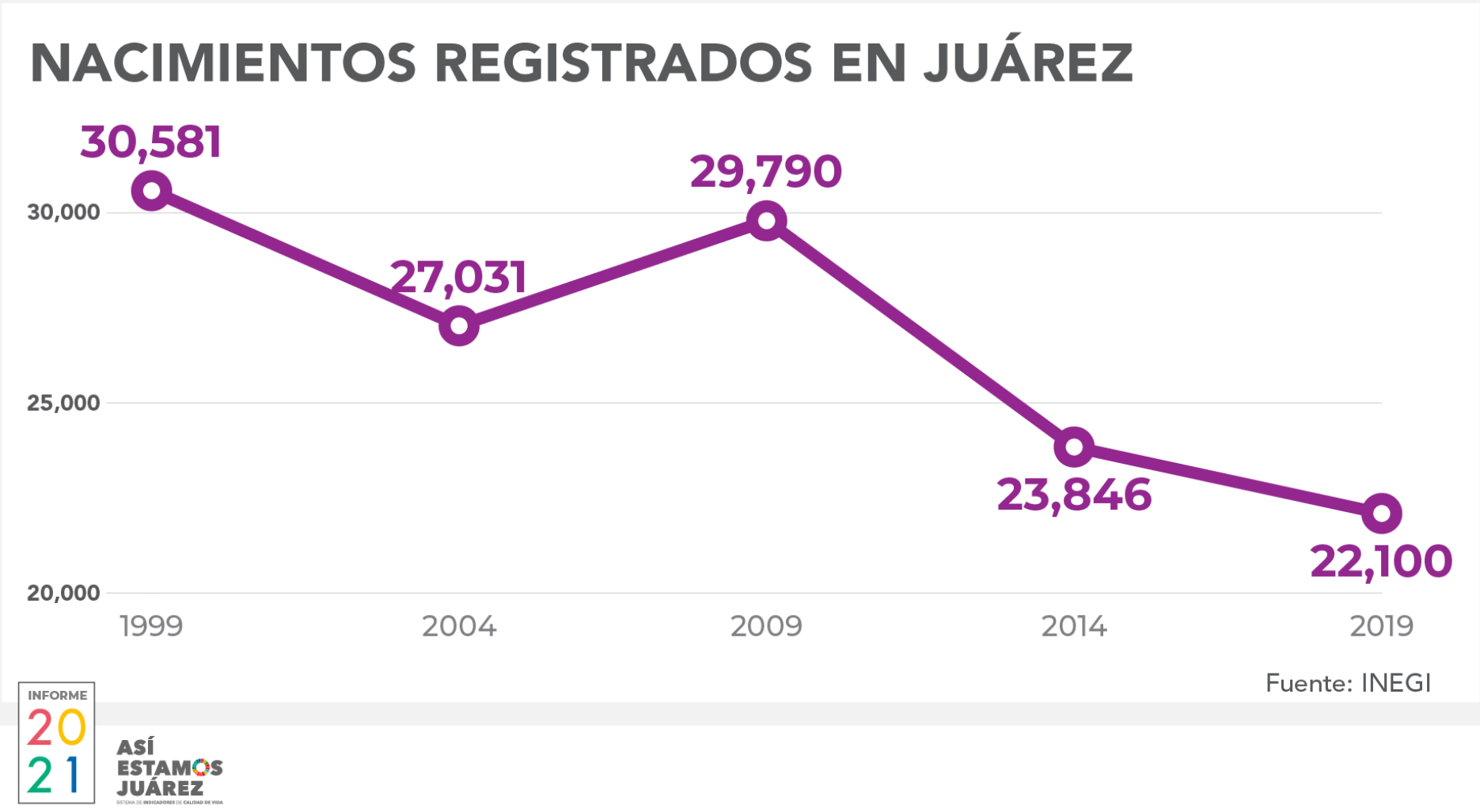 Ciudad Juárez, Chihuahua.— Ayer la asociación civil Plan Estratégico de Juárez (PEJ) presentó la décima edición del Informe Así Estamos Juárez, que reúne información oficial y la opinión de la ciudadanía en temas como salud, educación, infraestructura, medio ambiente, seguridad, entre otros. En primer lugar la doctora Érika Donjuán Callejo, coordinadora de Así Estamos Juárez, expuso información referente a demografía y economía. Trascendió que en Juárez se registraron 1 millón 512 mil 450 personas en el Censo 2020 del Instituto Nacional de Geografía y Estadística (INEGI). En cuanto a edades, la población joven se vio reducida en comparación con el censo anterior, de 2010, y aumentó la población de mayor edad. En 2019 se registraron 22 mil 100 nacimientos, la menor cantidad en cinco años.