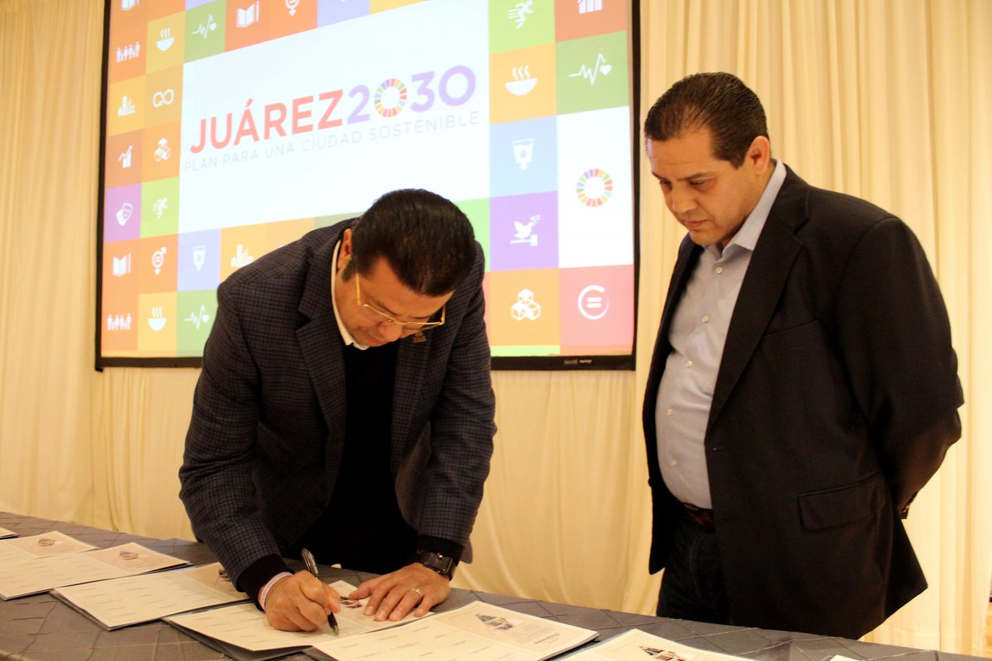 Ciudad Juárez, Chihuahua.— Ayer Plan Estratégico de Juárez presentó el Plan Juárez 2030, un instrumento para el desarrollo sostenible de la ciudad, realizado en conjunto con organizaciones de la sociedad civil, expertos en diversos rubros, los tres órdenes de gobierno y la Programa de las Naciones Unidas para el Desarrollo (PNUD). La Agenda 2030 busca impulsar el desarrollo sostenible de la ciudad en un proyecto pensado para los próximos 11 años, que trascienda a los tiempos políticos de las administraciones gubernamentales. https://www.youtube.com/watch?v=AcTm0L-mUKo&feature=youtu.be El plan se basa en un sistema de indicadores generados por más de 150 expertos que participaron en el proyecto y que busca cumplir 18 objetivos y 90 metas. Sergio Meza de Anda, director del Plan Estratégico de Juárez, dijo en el evento que el proyecto es de suma importancia para el desarrollo de la ciudad ya que “los gobiernos se van pero la sociedad se queda”. Al evento asistieron funcionarios de los tres niveles de gobierno y representantes de la sociedad civil que se comprometieron a sumarse a la Agenda 2030.