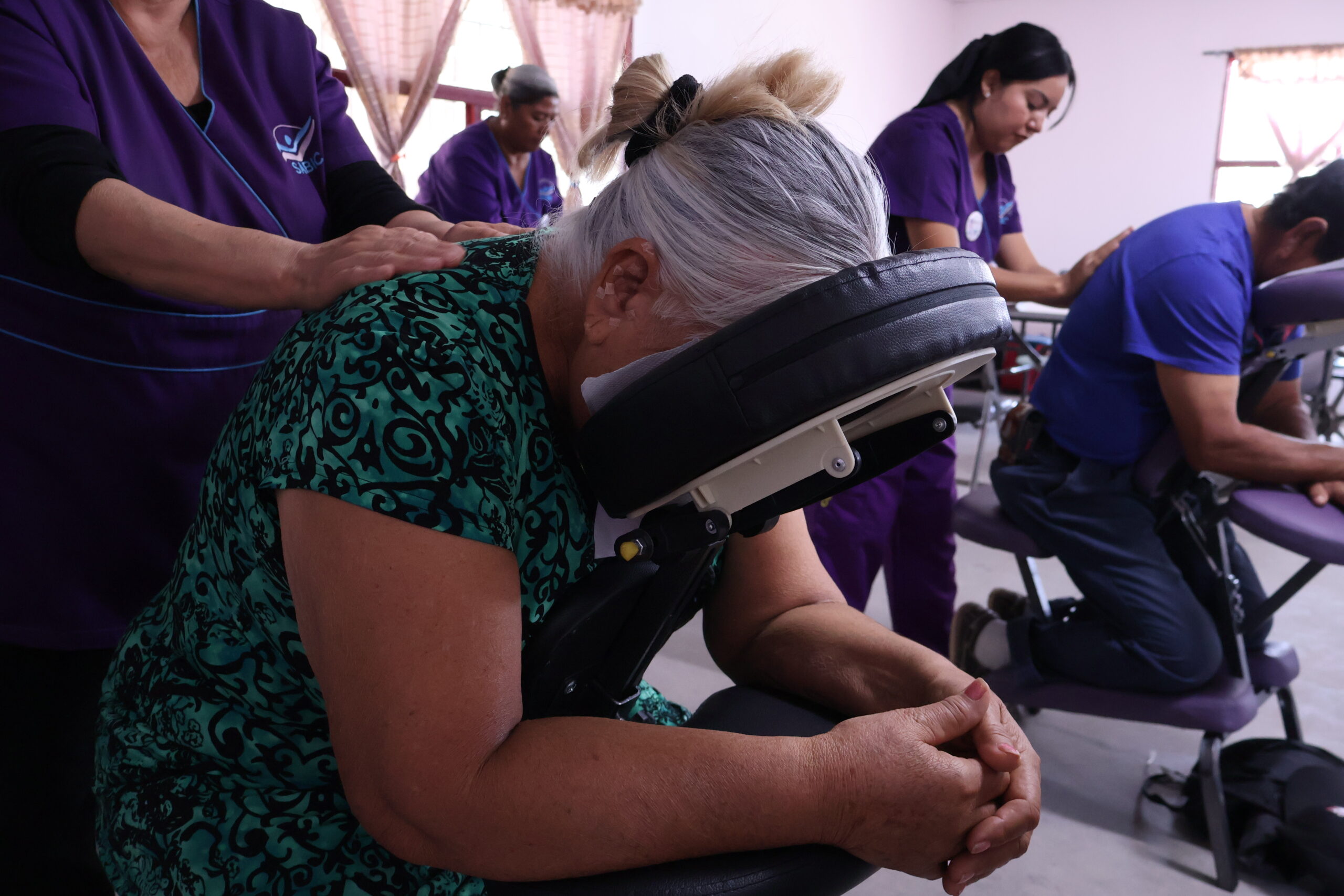 Reyna Valdez, directora general de SABIC, explica que a través de las campañas comunitarias encontraron la forma de acercarse a la comunidad y brindarles terapias alternativas con el fin de atender su salud física y bienestar emocional, además de fomentar la importancia del autocuidado, principalmente en mujeres, niñas, niños y adolescentes.