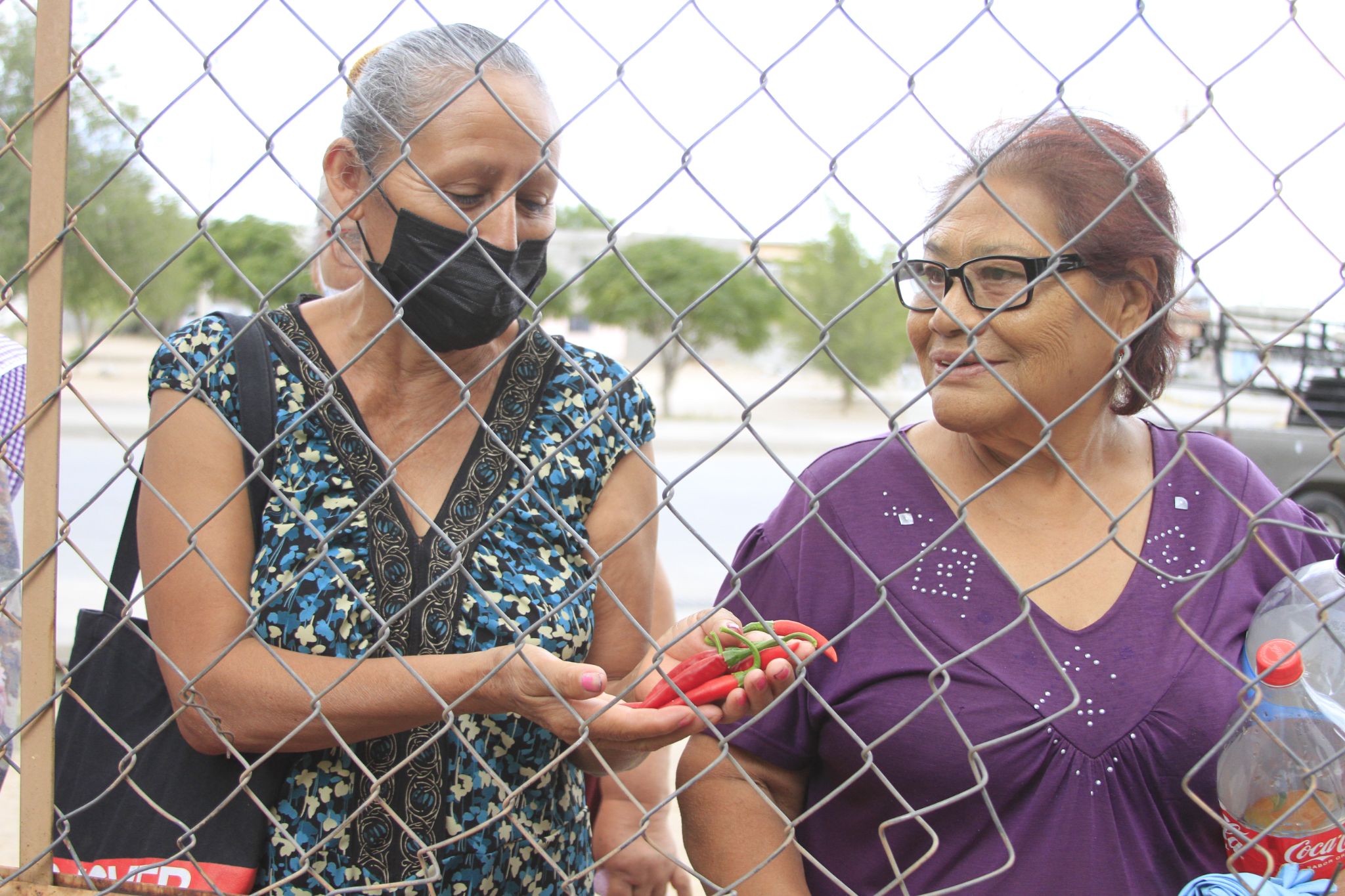 Una decena de adultas mayores esperan con ansias la cosecha de chiles puya que se dio en el Centro Comunitario Frida Kahlo. “Con esto voy a almorzar. Una salsa, unos frijoles ¿y qué más quieres?”, dice una de las personas que se encuentra detrás de la reja en donde Arturo Ponce corta con prisa los chiles para entregarlos a los habitantes de la colonia Frida Kahlo.