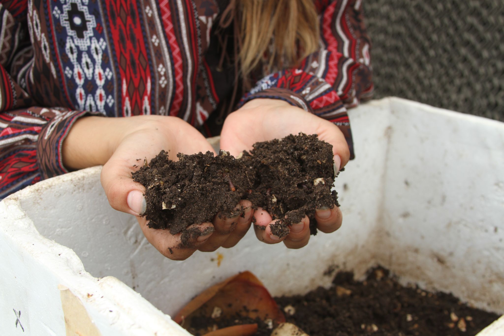 Junto al invernadero más grande se encuentra una gran extensión de tierra destinada a la composta que sirve para nutrir los cultivos. Dentro del invernadero experimentan con otras técnicas, como la lombricomposta con la que se crea un fertilizante natural.
