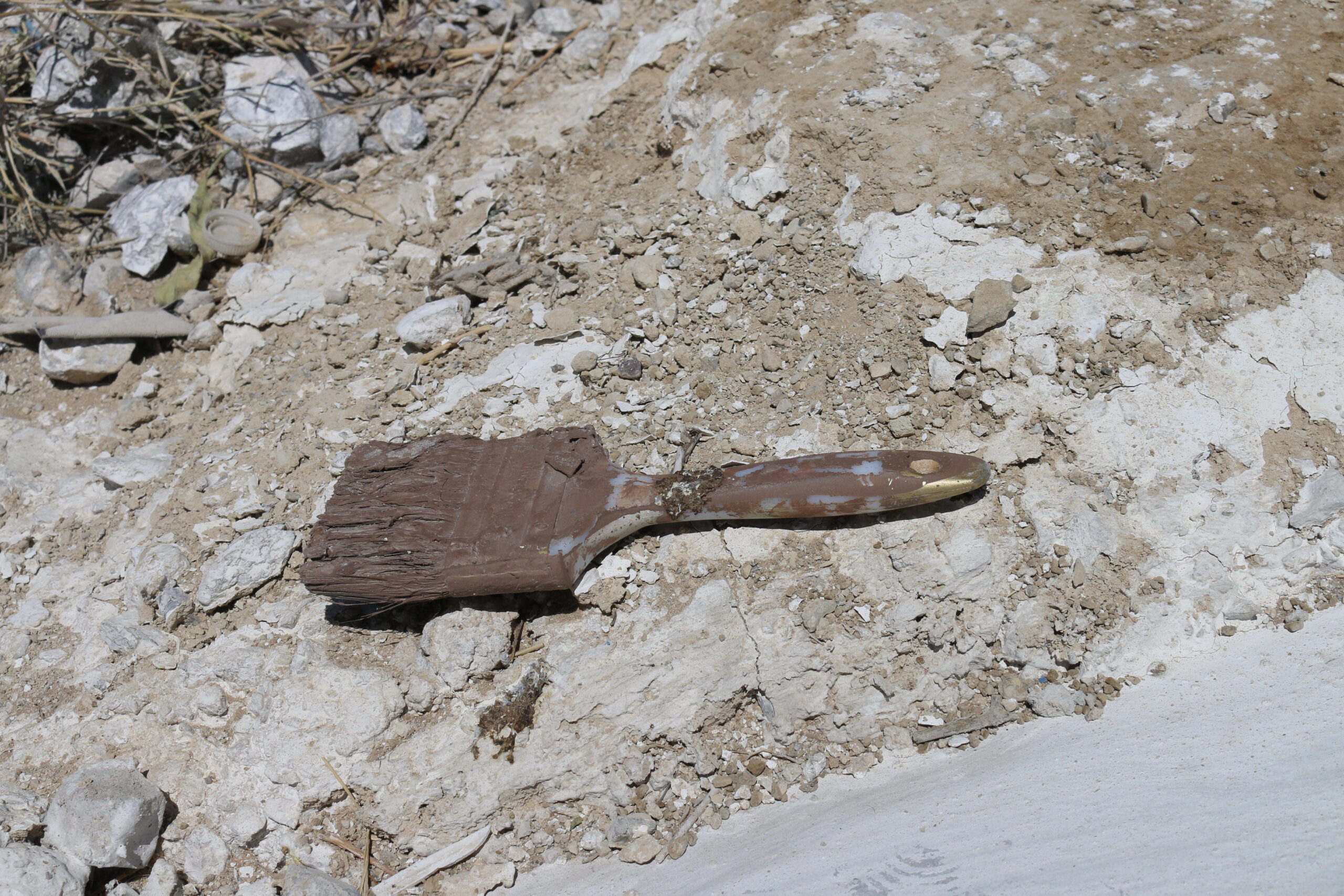 YoCiudadano, en compañía de la bióloga Laura Prieto, acudió al sitio donde está la pinta y detectó que había brochas, basura, flora aplastada y escurrimientos del “óxido de calcio” –material que se usó para pintar según la Dirección de Ecología–.