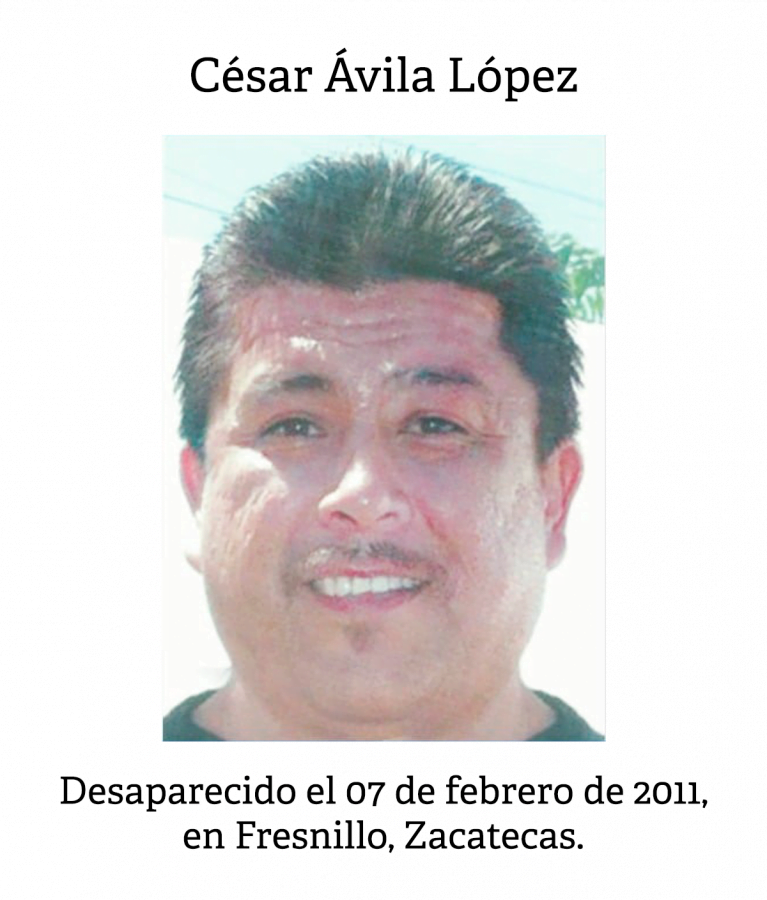 Uno que relata la vida de su hermano César Ávila López, desde su infancia, pasando por su adolescencia y el nacimiento de sus hijos, hasta el día en que desapareció, en febrero de 2011, cuando tenía 43 años. César Ávila fue detenido en Fresnillo, Zacatecas, por hombres que se identificaron como agentes ministeriales y se lo llevaron argumentando una averiguación relacionada con un vehículo.