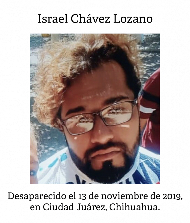 Israel Chávez Lozano desapareció el 13 de noviembre de 2019, a los 29 años, cuando intentaba cruzar la frontera entre México y Estados Unidos. Iba en compañía de su tío José Luis Lozano Mendoza, de 34 años. En total eran cuatro hombres y dos mujeres, de los que actualmente no se sabe nada.