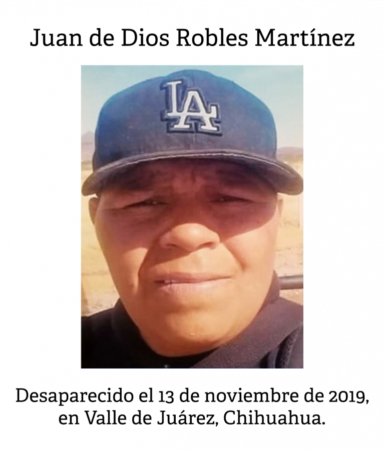 Juan de Dios Robles Martínez tenía 36 años cuando salió rumbo a Práxedis para cruzar a Estados Unidos y su familia ya no supo nada de él. Quería volver a El Paso, Texas, donde trabajaba en la construcción y de donde lo habían deportado.
