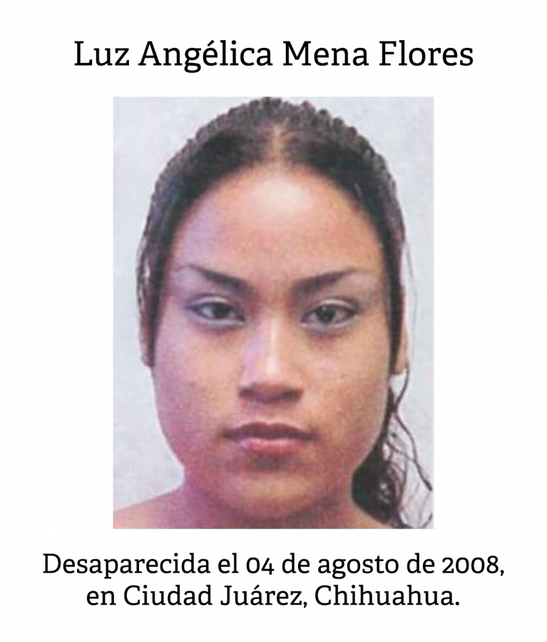 A Luz del Carmen Flores le duele no tener muchos objetos de su hija Luz Angélica Mena Flores, desaparecida el 4 de agosto de 2008, cuando salió a buscar trabajo en el Centro Histórico de la ciudad. De ella atesora dos fotografías, un póster de Piolín y dos vestidos que Luz Angélica se mandó a hacer para un bailable de la escuela.