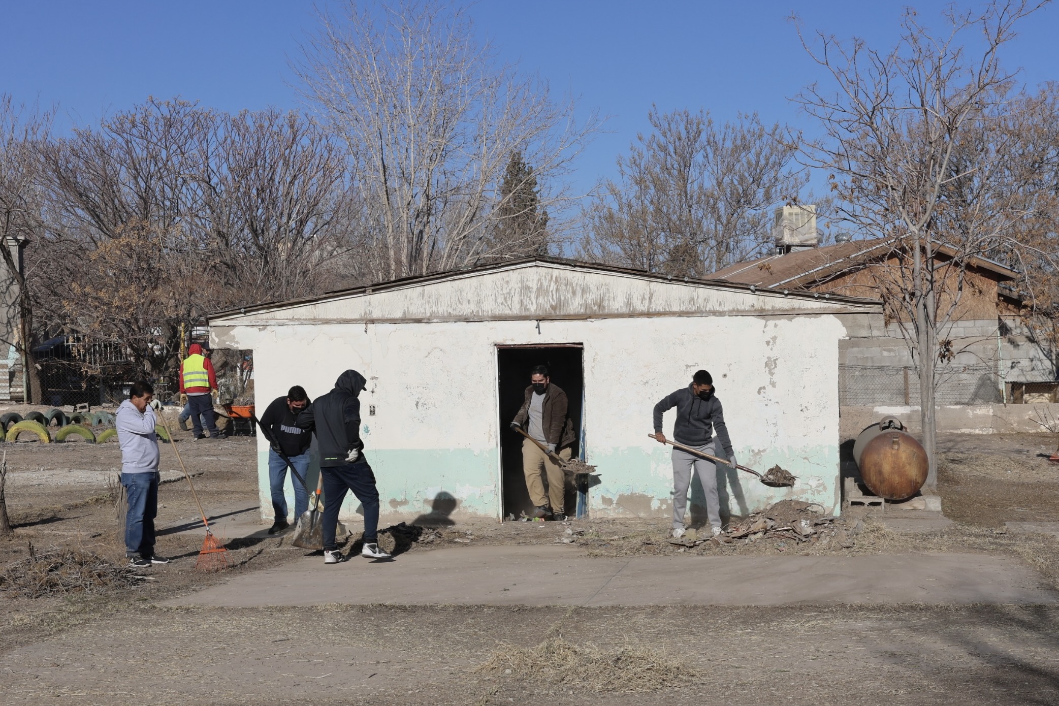 Los estudiantes y trabajadores municipales quitaron la maleza, basura, objetos peligrosos y barrieron el polvo de los salones. Camiones de Servicios Públicos se llevaron los residuos recolectados durante la limpieza.