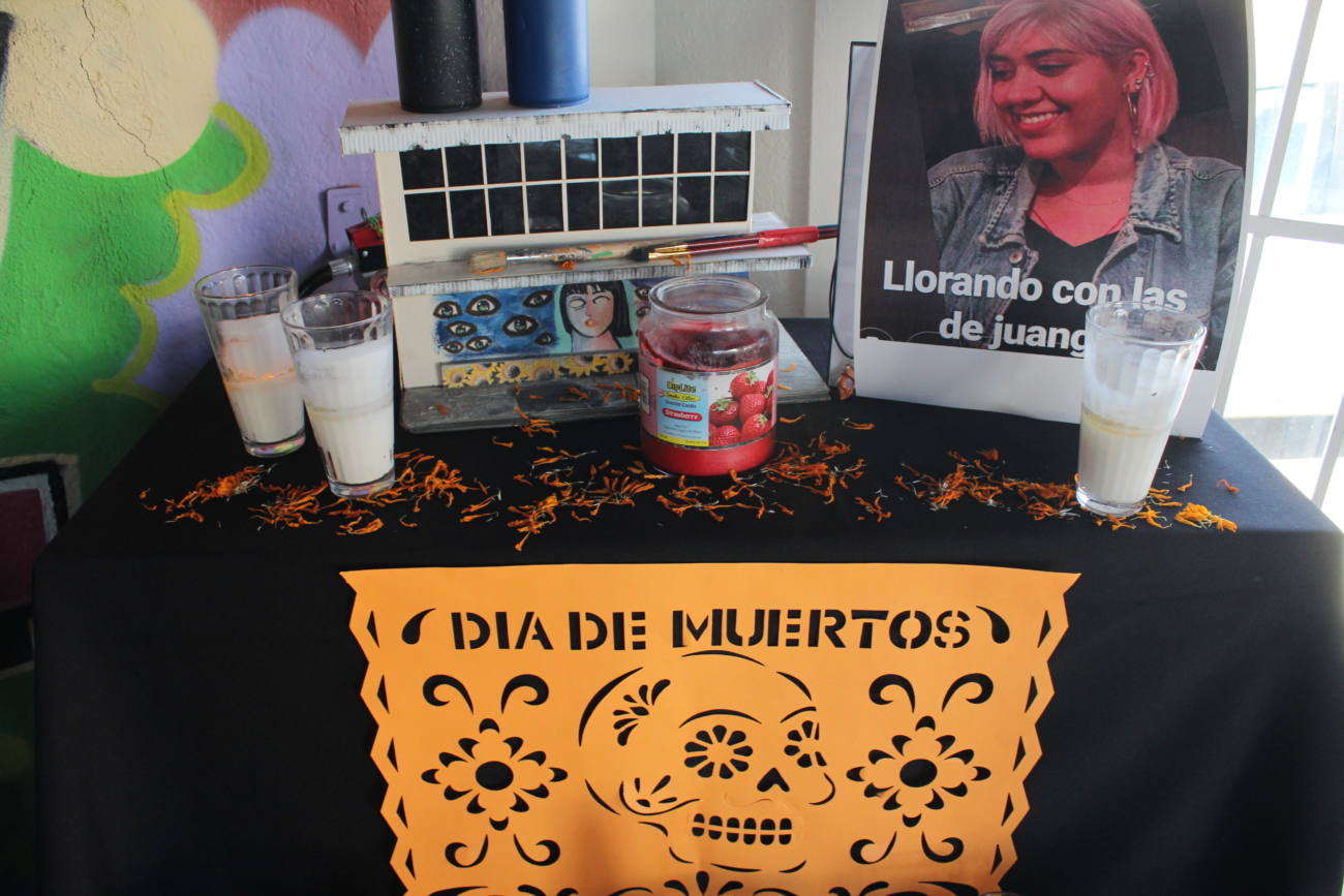 Ciudad Juárez, Chihuahua.— Dentro de la panadería Rezizte hay un altar de muertos de tres pisos. En el primero hay una maqueta del mural que está cruzando la calle, unos pinceles manchados de pintura, veladoras, pétalos de flor de cempasúchil y una fotografía de una mujer sonriente de cabello de colores. Es Isabel Cabanillas de la Torre.