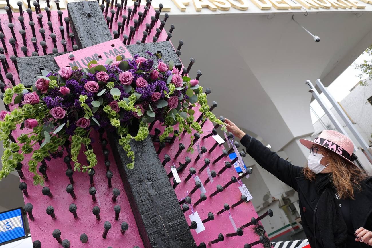 Ciudad Juárez, Chihuahua.— Por la calle Gardenias, en el Centro Histórico de Ciudad Juárez, se escucha el repique de una campana que solo suena en ocasiones especiales para la lucha de las mujeres. Hoy, en el Día Internacional de la Eliminación de la Violencia contra la Mujer, las Mujeres de Negro la trajeron a Ciudad Juárez para que retumbe debajo de la Cruz de Clavos, en el puente internacional Paso del Norte. “Tenemos muchas conmemoraciones, muchos eventos, y eso nos alegra porque son cambios; sin embargo, la violencia contra las mujeres no disminuye, al contrario, sigue aumentando y por eso está campana esta aquí”, dice Graciela Ramos, de las Mujeres de Negro. Ramos recuerda que en noviembre de 2001, cuando las autoridades encontraron los cuerpos sin vida de ocho mujeres en lo que ahora se conoce como el Campo Algodonero, un grupo de mujeres chihuahuenses decidieron vestir túnicas negras y sombreros rosas para presentarse en los eventos del gobierno estatal y exigir justicia para las víctimas. Un mes más tarde instalaron la Cruz de Clavos frente al puente internacional, para representar a cada una de las víctimas de feminicidio en Ciudad Juárez. Cada clavo es una mujer asesinada por la violencia machista.