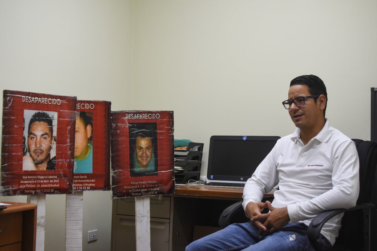 “Mi hermano ya tenía 10 años en Estados Unidos, regresó (a Ciudad Juárez) queriendo encontrar la ciudad que había dejado, pero eran los años de violencia, muchos de nuestros amigos de la infancia ya habían muerto, no había la libertad que quiere todo joven de salir y divertirse, por lo que decidió ir a Cuauhtémoc, donde nació, pensado que ahí sería mejor”, relata. El plan de César Gonzalo era trabajar de mecánico durante un tiempo en aquella ciudad, para reunir dinero y regresarse a Estados Unidos; no tenía ni un mes trabajando cuando unas personas fueron hasta su taller y se lo llevaron. “Entonces Cuauhtémoc era conocida como la capital de la desaparición, porque eran tantas en una ciudad con tan poca población que era imposible que las autoridades no se dieran cuenta”, explica Daniel Alejandro. En la búsqueda de su hermano conoció otras familias con historias similares, orientadas en el proceso por el Centro de Derechos Humanos Paso del Norte. Se dio cuenta que casi todos los hombres que se desaparecían, lo habían hecho en situaciones muy parecidas. Así se conformó el colectivo. Este, además de las actividades de búsqueda, les permite acceder a información sobre el fenómeno de la desaparición forzada, reciben orientación sobre la forma en la que deben proceder para encontrar a sus familiares, y también son asesorados psicológica y legalmente.