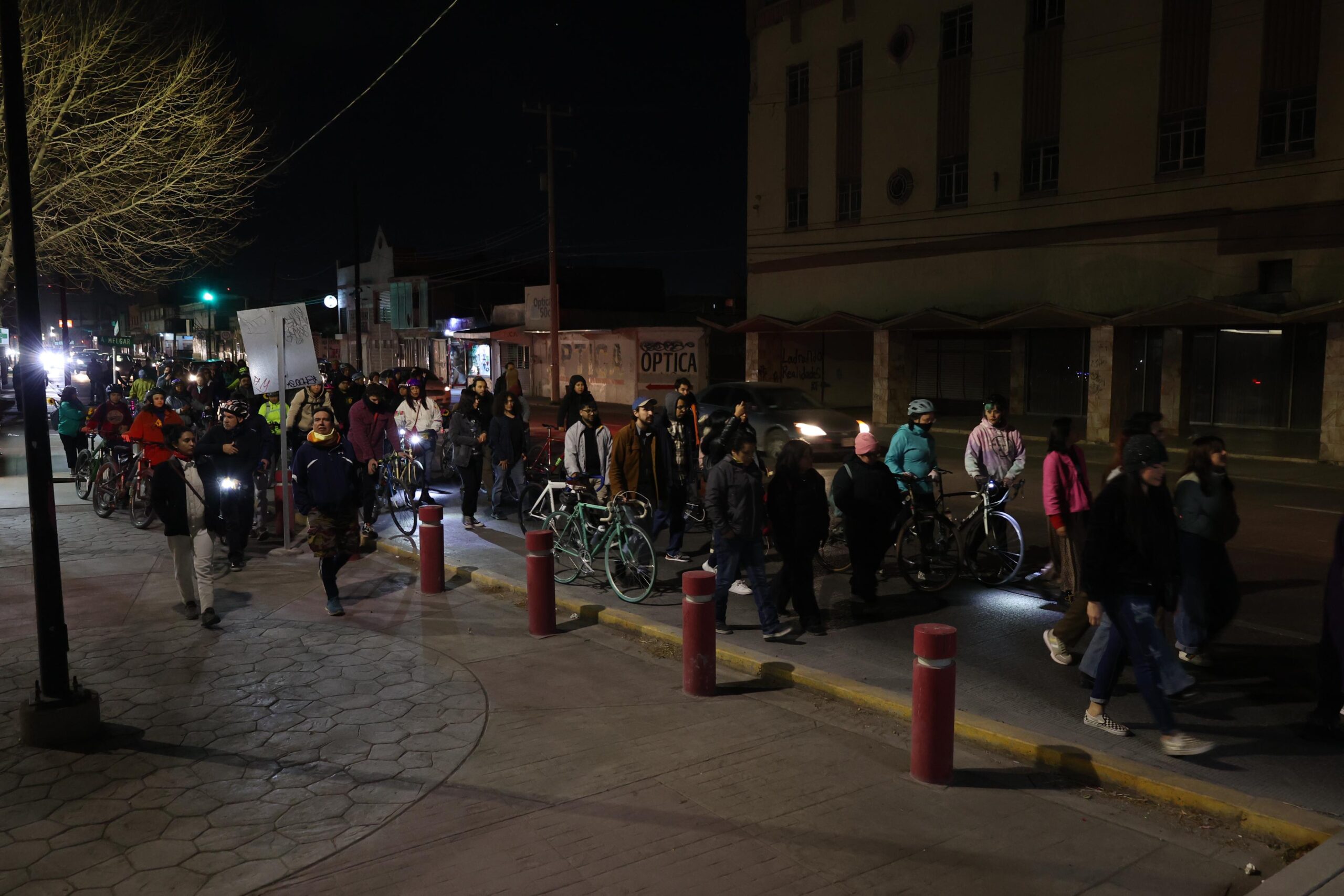 En la panadería se reunieron ciclistas, familiares y amigas de la artista y activista juarense para recrear a pie el último recorrido de la artista y activista juarense, asesinada en la calle Inocente Ochoa, en la Zona Centro.