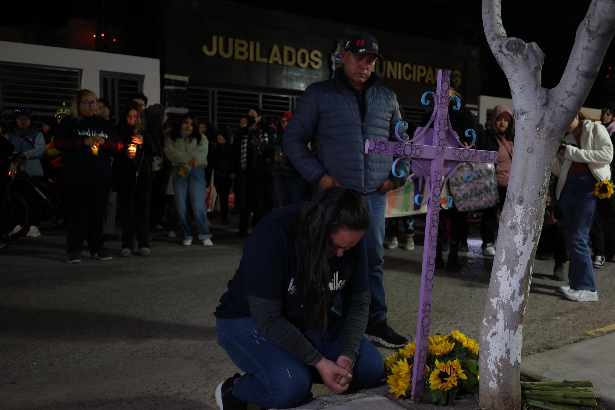 El recorrido llegó hasta la calle Inocente Ochoa, frente al edificio de Pensionados y Jubilados del gobierno municipal de Juárez, que se ha convertido en un sitio de memoria y exigencia de justicia.
