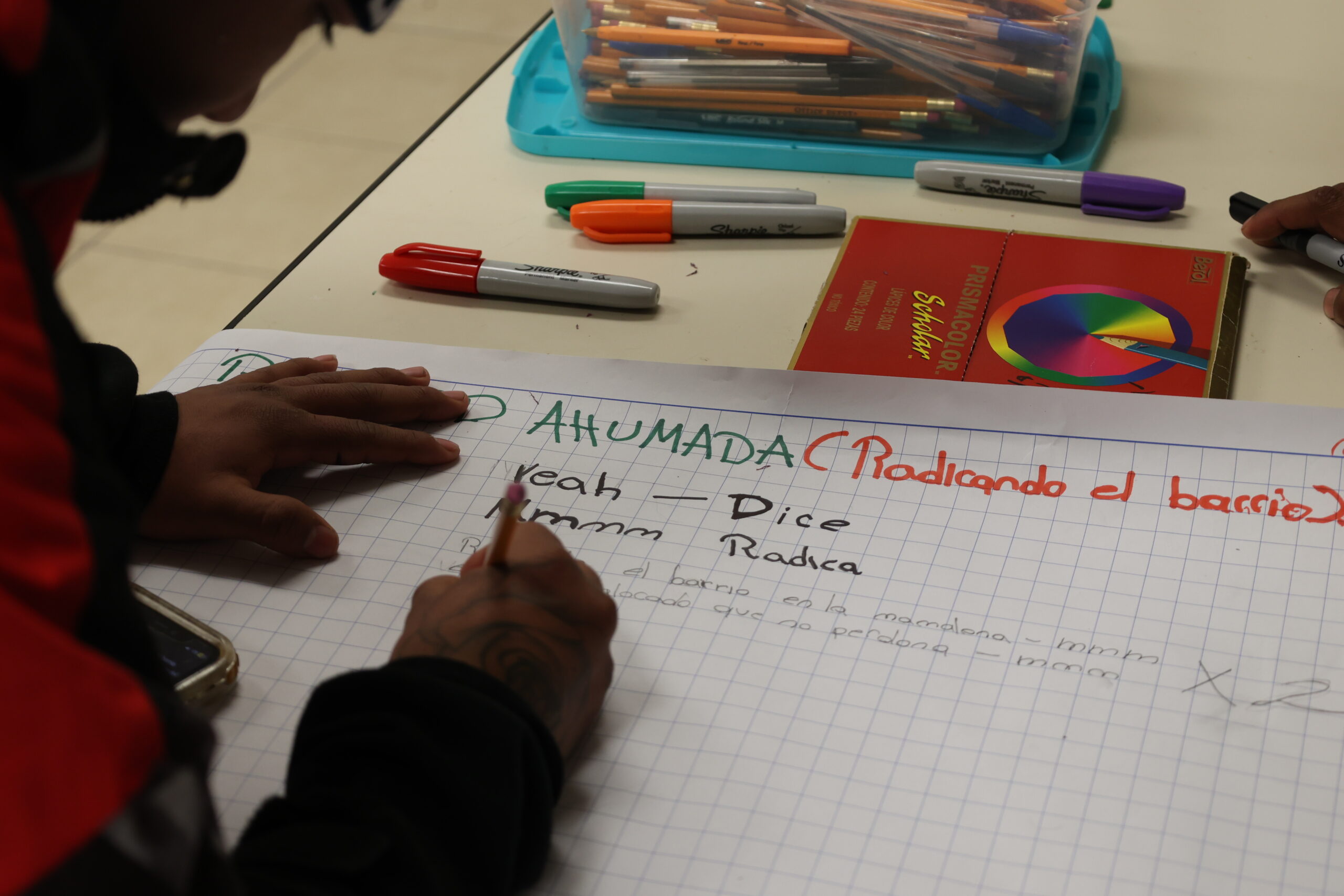 Mientras escribe la letra de una canción de rap como parte del taller de Crecimiento y Desarrollo Humano, Omar recuerda cómo han cambiado su cuerpo y su mente en los últimos meses. En comparación con el de antes, sería irreconocible, dice.
